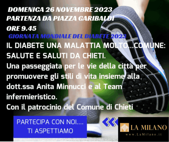 Chieti: una passeggiata curativa per la Giornata Mondiale del Diabete, domenica 26 novembre