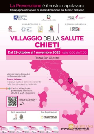 Chieti ospita il Villaggio della Salute Komen: dal 29 ottobre al 1° novembre visite gratuite e attività per la prevenzione femminile. La città di Chieti si prepara ad accogliere, dal 29 ottobre al 1° novembre, il Villaggio della Salute Komen Italia, unica tappa in Abruzzo della carovana nazionale dedicata alla prevenzione e alla lotta contro […]